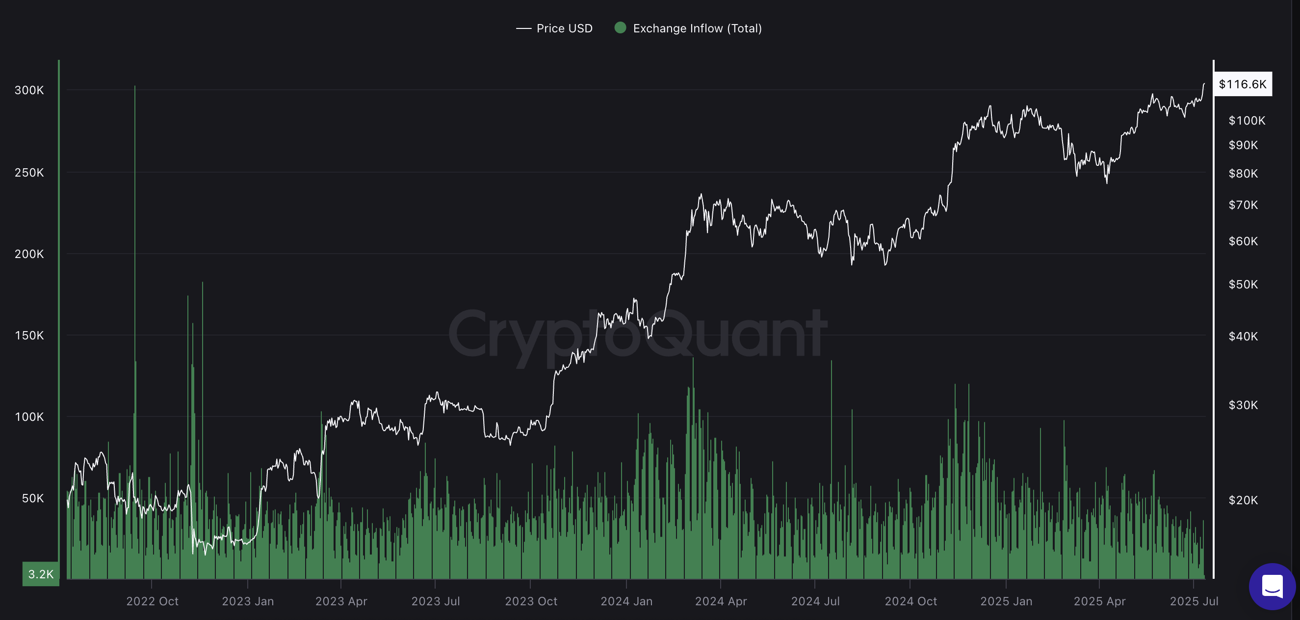 BTC قیمت و جریان تبادل: cryptoquant