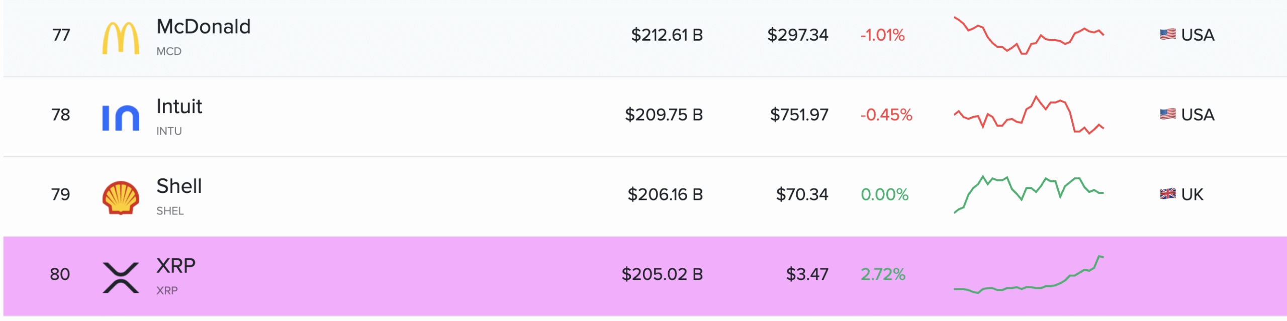 اگر XRP روند صعودی خود را ادامه دهد، احتمال دارد که از HSBC، یکی از بزرگترین بانکهای بریتانیایی و تویوتا، غول خودروسازی ژاپنی، نیز پیشی بگیرد.